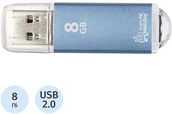 Флеш-диск SMARTBUY V-Cut, 8GB, USB 2.0, синяя, металлический корпус