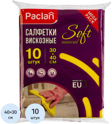 Салфетки хозяйственные Paclan вискоза 40×30 см 90 г/кв.м (10 штук в упаковке)