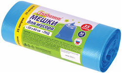 Пакеты для мусора ПНД ЛЮБАША, 35 л, 50х60 см, 10 мкм, синие, 30 шт/рул