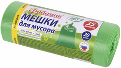 Пакеты для мусора биоразлагаемые ПНД, ЛЮБАША, 35 л, 50х60 см, 11 мкм, зеленые, 20 шт/рул