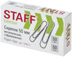 Скрепки металлические STAFF «EVERYDAY», 50 мм, гофрированные, 50 шт/уп
