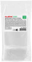 Ложка столовая одноразовая пластиковая LAIMA, 165 мм, белая, комплект 100 шт., стандарт