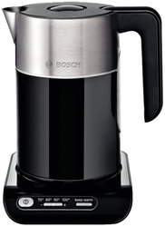 BOSCH TWK8613P объемом 1,5 литра и мощностью 2400 Вт обеспечит закипание необходимого количества воды в кратчайшее время. Данная модель имеет систему регулировки температуры TemperatureControl: выбор температуры нагрева воды 70 °C, 80 °C, 90 °C или температура кипения. Функция поддержания температуры воды KeepWarm Function: поддерживает заданную температуру в течение 30 минут.