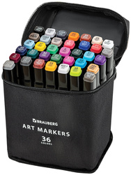 Маркеры для скетчинга двусторонние BRAUBERG, набор 36 шт, текстильный чехол