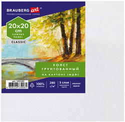 Холст на картоне BRAUBERG ART CLASSIC, 20х20 см, 280 г/м2, грунтованный, 100% хлопок