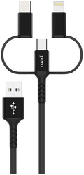 Кабель для зарядки и синхронизации мобильных устройств PERO, micro USB, USB Type-C, USB Type-A, Lightning, нейлоновый, длина 1 м, черный