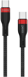 Кабель для зарядки и синхронизации мобильных устройств PERO, USB-C- USB-C, нейлоновый, длина 1,5 м, черный