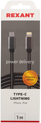 Кабель для зарядки и синхронизации мобильных устройств REXANT, USB Type-C, Lightning, нейлоновый, длина 1 м, тёмно-серый