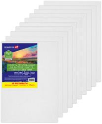 Прочная поверхность холста выдерживает множество слоев краски и воздействие разбавителей, хорошо переносит изменения влажности и температуры. Грунтованное мелкозернистое полотно из хлопка плотностью 280 г/м2 наклеено на основу из плотного картона. Холст на картоне легче и меньше по сравнению с холстами на подрамнике, тем самым он очень удобен для транспортировки. Набор из 10 холстов. Размер - 30х40 см.