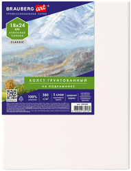 Холст на подрамнике BRAUBERG ART BASIC, 18х24 см, 380 г/м2, грунтованный