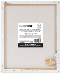 Холст на подрамнике BRAUBERG ART BASIC, набор 2 штуки, 40х50 см, 280 г/м2, хлопок