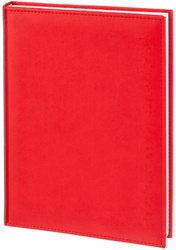 Ежедневник датированный на 2026 год. Формат: 200×270 мм. Цвет: красный. Блок 352 страницы (176 листов) в 2 краски. Бумага офсетная 70 г/кв.м. Блок с перфорацией уголка. Алфавитный блок без вырубки. Дополнительный блок со справочной информацией включает: календарь на 2026-2029 года, планирование на год, справочная информация, карта часовых поясов, лучшие места отдыха в зависимости от времени года, международные размеры одежды и обуви, символы по уходу за одеждой, знаки зодиака, питание и расход калорий. Закладка-ляссе. Твердая обложка с прошивкой по периметру выполнена из искусственной кожи высокого качества. Возможно нанесение логотипа на обложку, любым способом тиснения (блинт или фольга).