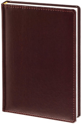 Ежедневник датированный на 2026 год. Формат: 143×210 мм. Цвет: бордовый. Блок 360 страниц (180 листов) в 2 краски. Бумага офсетная 70 г/кв.м. Блок с перфорацией уголка. Вырубка блока по месяцам. Дополнительный блок со справочной информацией включает: календарь на 2026-2029гг., планирование на год, справочная информация, карта часовых поясов, лучшие места отдыха в зависимости от времени года, международные размеры одежды и обуви, символы по уходу за одеждой, знаки зодиака, питание и расход калорий. Закладка-ляссе. Твердая обложка с прошивкой по периметру, выполнена из искусственной кожи высокого качества. Возможно нанесение логотипа на обложку, любым способом тиснения (блинт или фольга).