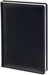 Ежедневник датированный на 2026 год. Формат: 143×210 мм. Цвет: синий. Блок 360 страниц (180 листов) в 2 краски. Бумага офсетная 70 г/кв.м. Блок с перфорацией уголка. Вырубка блока по месяцам. Дополнительный блок со справочной информацией включает: календарь на 2026-2029гг., планирование на год, справочная информация, карта часовых поясов, лучшие места отдыха в зависимости от времени года, международные размеры одежды и обуви, символы по уходу за одеждой, знаки зодиака, питание и расход калорий. Закладка-ляссе. Твердая обложка с прошивкой по периметру, выполнена из искусственной кожи высокого качества. Возможно нанесение логотипа на обложку, любым способом тиснения (блинт или фольга).