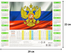Табель-календарь настольный на 2026, Госсимволика, А4 (290х220 мм), 5 шт/уп
