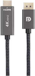 Кабель для передачи аудио/видео сигналов TELECOM, DisplayPort- HDMI (штекер), текстиль, длина 1,8 м, серый