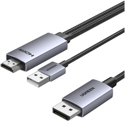 Кабель для зарядки и синхронизации мобильных устройств UGREEN, HDMI- DisplayPort (гнездо), длина 2 м, серый