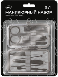 Универсальный набор для маникюра и педикюра WBZ, 9 в 1 в футляре, мини,черный карбон, блистер