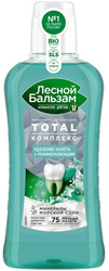 Профилактический ополаскиватель Лесной бальзам Тройной эффект экстрасвежесть надолго подарит вам ощущение свежести дыхания и обеспечит максимальную защиту от неприятного запаха изо рта в течение дня. Очищает до 100% полости рта, нейтрализует действие патогенных бактерий в полости рта и значимо снижает скорость образования налёта. Ополаскиватель обладает выраженным мятным вкусом и сочетает в себе сразу 3 действия, позволяя достичь максимальной защиты всей полости рта: 1. Укрепляет дёсны благодаря запатентованной формуле на отваре трав (90% отвара трав), усиленной соком алоэ и экстрактом молодых листьев чёрной смородины. 2. Защищает от кариеса и укрепляет эмаль за счёт минерального комплекса с фтором. 3. Дарит длительное ощущение свежести и защищает от образования неприятного запаха изо рта за счёт усиленной формулы с натуральной мятой.