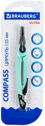 Циркуль с защитным колпачком BRAUBERG «ULTRA», 135 мм, мятный, блистер