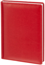Данный ежедневник имеет формат A5, содержит 176 листов. Твёрдая обложка с поролоном, выполненная из высококачественной искуственной кожи красного цвета, придаёт изделию элегантный и профессиональный вид. Страницы выполнены из белой офсетной бумаги плотностью 70 г/кв.м. Дизайн обложки: универсальный.