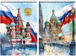 Блокнот на спирали BG Россия, А4, 80 листов, клетка, твердая подложка
