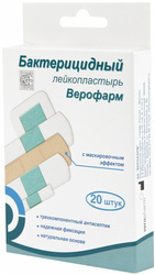 Набор лейкопластырей бактерицидных ВЕРОФАРМ, 20 штук, 4 размера, телесные