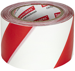 Лента оградительная сигнальная BRAUBERG, красно-белая, 75 мм х 200 м, «Грандмастер», полиэтилен