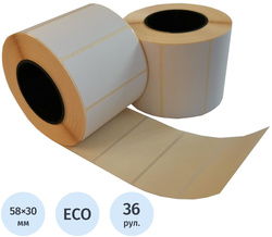 Термоэтикетки 58×30 мм ЭКО 40 мм диаметр втулки (36 рулонов по 900 этикеток)