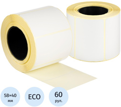 Термоэтикетки ЭКО 58х40, втулка 40, 580 шт/рул, 60 рул/уп