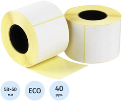 Термоэтикетки ЭКО 58х60, втулка 40, 450 шт/рул, 40 рул/уп