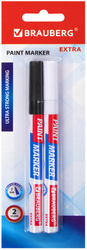 Маркер-краска лаковый BRAUBERG Extra, набор 2 цвета, белый, черный, линия 2 мм, усиленная нитро-основа
