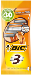 Станок для бритья одноразовый BIC 3, Sensitive, мужской, 4 шт/уп