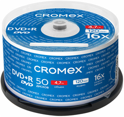 DVD+R диски в тубе CROMEX, 50 штук, 16х, 4,7 Gb, Cake Box