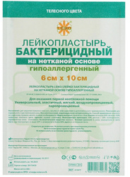 Лейкопластырь бактерицидный LEIKO, 6х10 см, телесного цвета на нетканой основе, 200 шт/уп