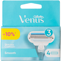 Бритвы для женщин Venus Smooth — это первые бритвы с 3 лезвиями, созданные специально для женщин. Три повторяющих изгибы тела лезвия, окружённые разглаживающей полоской, обеспечивают быстрое и надёжное бритьё. Голубая полоска-индикатор бледнеет, когда приходит время менять лезвия. Любая сменная кассета комплекта подходит к любой бритвенной ручке Venus (кроме Simply Venus и Venus для зоны бикини). Все сменные кассеты с лезвиями Smooth для женщин служат до одного месяца (при бритьё дважды в неделю).
