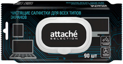 Салфетки влажные Attache Selection для экранов (90 штук в упаковке).