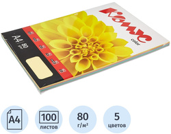 Бумага цветная КОМУС COLOR, А4, 80 г/м2, 100 листов, микс пастель, 5 цветов