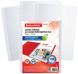 Файловые карманы BRAUBERG EXTRA 1100, А4, 110 мкм, глянцевые, 50 шт/уп
