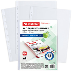 Файловые карманы BRAUBERG STANDARD+, А4, 45 мкм, глянцевые, 200 шт/уп