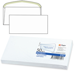 Конверты на смачиваемой склейке, E65 (110х220 мм), белые, «Куда-Кому», 80г/м², треугольный клапан, 50 шт/уп