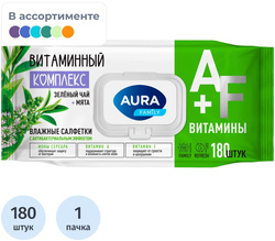 Салфетки влажные Aura Family антибактериальные флоупак с жёстким клапаном (180 листов в пачке)