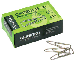 Скрепки никелированные GLOBUS, 31 мм, с загнутым краем, треугольные, 100 шт/уп