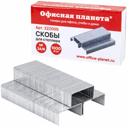 Скобы для степлера ОФИСНАЯ ПЛАНЕТА, №24/6 (до 30 листов), 1000 шт/упак