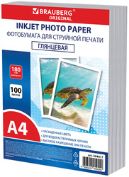 Фотобумага односторонняя глянцевая BRAUBERG ORGINAL, А4, 180 г/м2, 100 листов