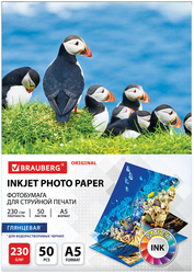 Фотобумага односторонняя глянцевая BRAUBERG ORGINAL, А5, 230 г/м2, 50 листов