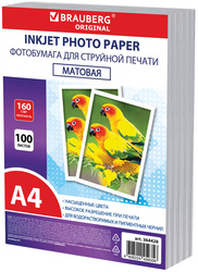 Фотобумага односторонняя матовая BRAUBERG ORGINAL, А4, 160 г/м2, 100 листов