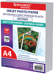 Фотобумага двусторонняя матовая BRAUBERG ORGINAL, А4, 200 г/м2, 100 листов