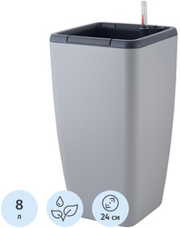 Горшок с автополивом Munchen, 20л с вставкой 8л, квадр ,св. серый