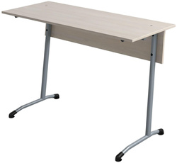 Парта двухместная Гармония. Столешница и фронтальная панель стола выполнены из ЛДСП толщиной 16 мм. Торцы столешницы закрыты противоударной кромкой ПВХ толщиной 2 мм. Торцы фронтальной панели закрыты противоударной кромкой ПВХ толщиной 0,5 мм. Металлический каркас выполнен из профиля круглого сечения диаметром 25 мм и плоскоовального сечения диаметром 45×25 мм с толщиной стенок не менее 1,5 мм. Каркас покрыт порошковой краской, стойкой к химическим и механическим воздействиям. На свободных концах труб установлены заглушки из ударопрочных полимеров. Каркас стола имеет полимерные подпятники, предотвращающие повреждение напольного покрытия. Вся крепёжная фурнитура на металлокаркасах скрыта внутри трубы для продления срока службы изделия. Переднее крепление на столешнице скрытое (резьбовые втулки и болты М6). Заднее крепление на столешнице сквозное (мебельный болт с гайкой). Фронтальная панель крепится к каркасу на мебельные болты с гайками. В конструкции предусмотрено два крючка для портфелей. Угол наклона вертикальной стойки каркаса 95 градусов относительно нижней опоры. Нижняя опора стола имеет изогнутую форму с двумя точками изгиба. Стол имеет цветовую маркировку в соответствии с ростовой группой. Стол изготавливается в соответствии с ГОСТ 11015-93.